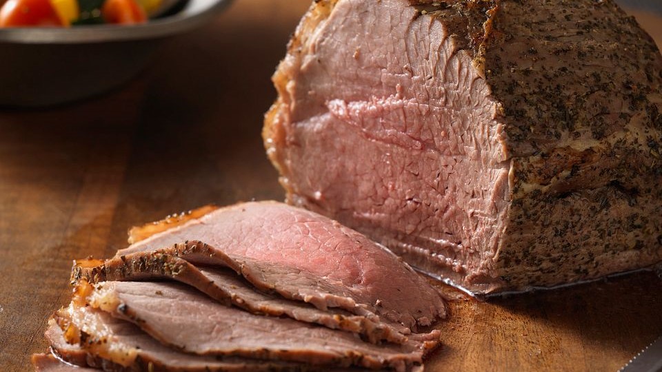 Make 8 small incisions (about 1/2 inch deep) around the meat and insert garlic into each. Rub the roast with olive oil until coated. Sprinkle sea salt, pepper, and dried herbs all over the roast.