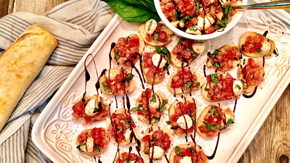 Add the tomato topping to each toast, and top with mozzarela cheese. Bake for another 3 minutes.