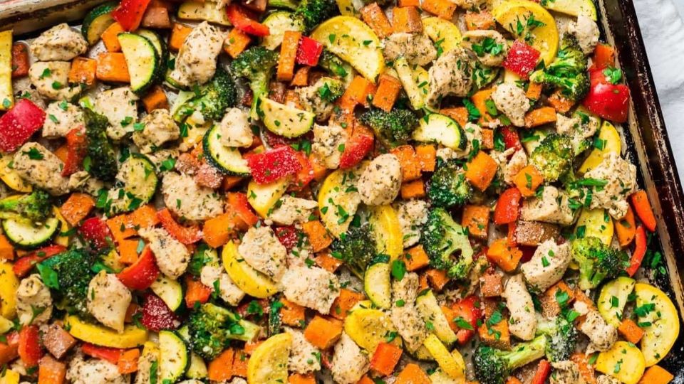 Return to the sheet pan to the oven and bake for 15 to 20 additional minutes, stirring once halfway through, until the chicken is cooked through and no longer pink in the middle. Sprinkle with Parmesan.